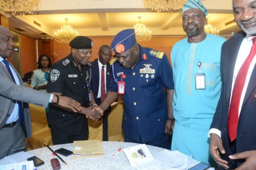 Chief of Defence Staff, Gen. Christopher Gwabin Musa who was represented by Commandant of Nigerian Armed Forces Resettlement Centre, Oshodi, Air Vice Marshal, AVM Bashir R Mamman; Assistant Inspector-General of Police, AIG in charge of Zone 2, AIG Adegoke Fayoade who is also representing IGP Kayode Adeolu Egbetokun; Corps Marshal of FRSC, Mallam Shehu Mohammed represented by the Lagos Sector Commander, CC Kehinde Hamzat; Commandant-General of NSCDC, Prof. Ahmed Audi represented by the Lagos State Commandant Keshinro Sunday; Board Member of the Lagos State Security Trust Fund, LSSTF, Dr. Ayo Ogunsan represented by the Chairman of POCACOV Lagos, Dr. Moses Oladimeji; Commander, Enugu State Forest Guard, Dr. DCP Akinbayo Olasoji; Commander of Ondo State Security Network (Amotekun), Amb. Akogun Adetunji Adeleye, CEO of Safety Signatures, Dr. Mrs. Cynthia Gregg.