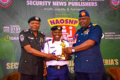 The Commandant General, Nigeria Security and Civil Defence Corps (NSCDC), Professor Ahmed Abubakar Audi, PhD., mni, OFR, was ably represented at this year’s NAOSNP’s National Security Conference and Awards by Mr Keshinro Adedotun, the Lagos State Commandant.